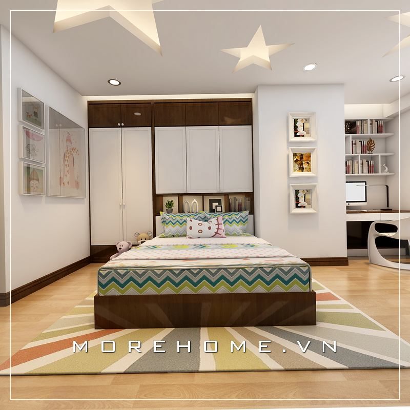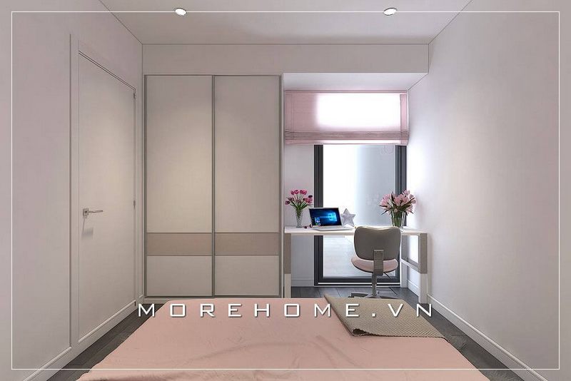 Thi công tủ áo phòng ngủ cho bé gái chung cư Eco Dream, tủ áo gỗ công nghiệp cánh lùa sơn cao cấp