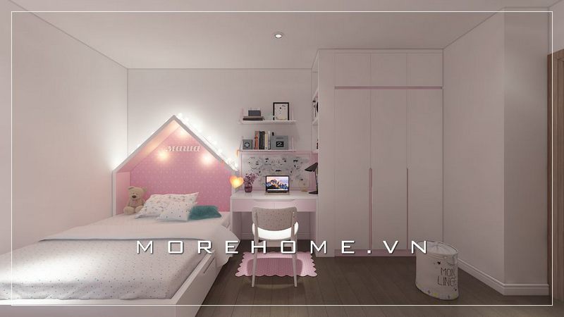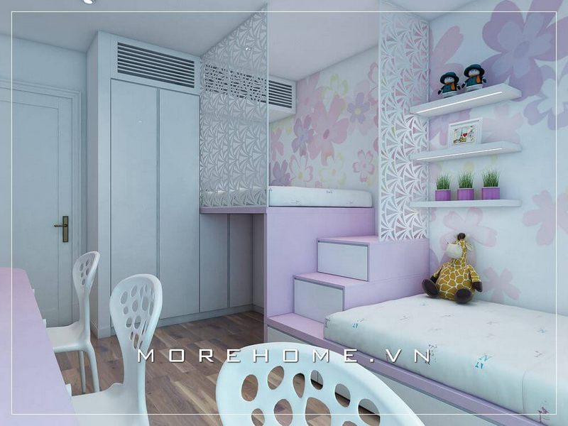 Mẫu tủ quần áo cánh mở hiện đại đa năng tích hợp kệ tủ, giường ngủ mang lại sự tiện nghi nhất cho bé gái nhà bạn