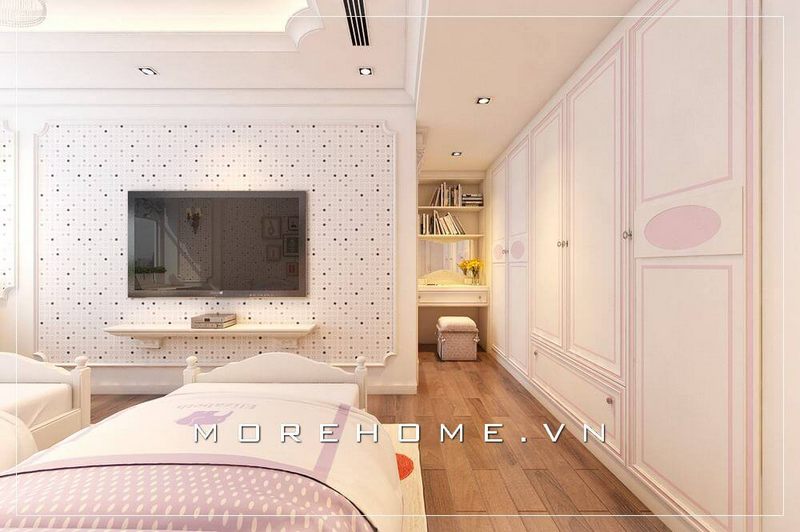Thiết kế tủ quần áo cho phòng ngủ 2 bé gái phong cách tân cổ điển tại biệt thự cao cấp