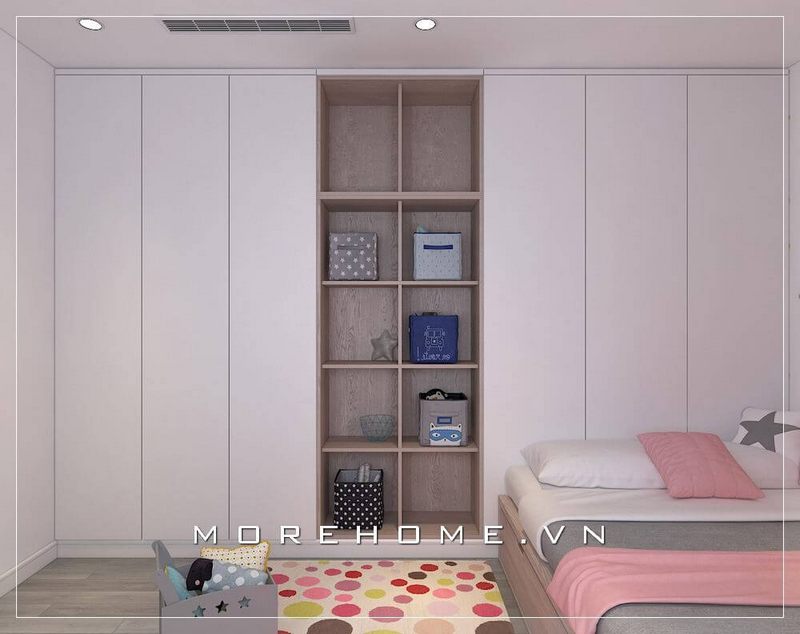 Tủ quần áo bé gái với lối thiết kế hiện đại, đơn giản mang lại cho không gian nghỉ ngơi thêm thoáng đãng và tiện nghi